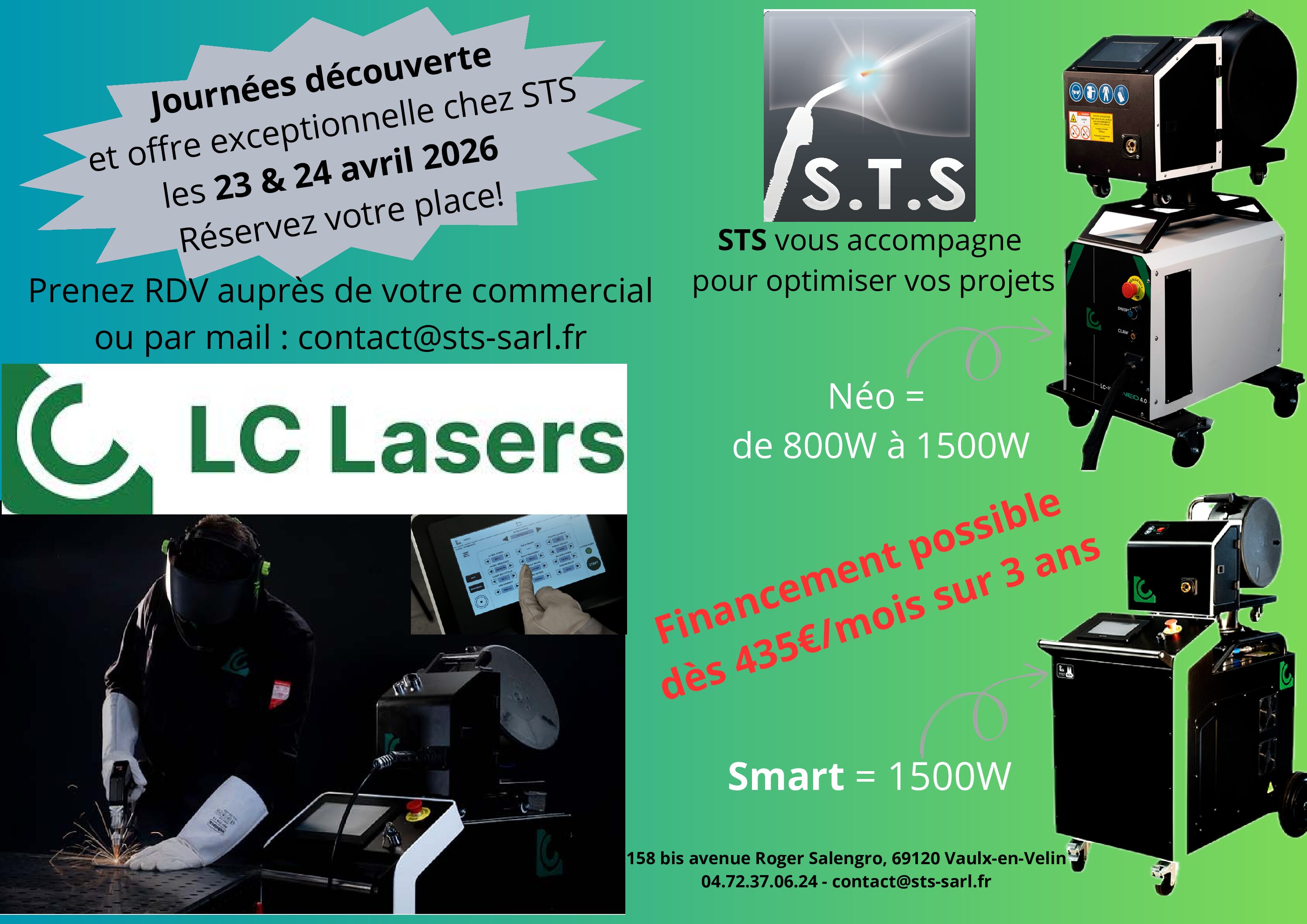 Avec LC Lasers, disponible chez STS (Service Technique du Soudage), vous intégrez une technologie performante et fiable, pensée pour s’adapter facilement à votre atelier.